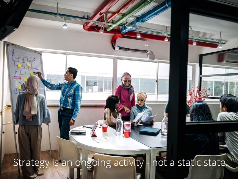Strategy (from planning through to its execution) is an ongoing activity, not a static state, not a PowerPoint presentation nor an Excel spreadsheet. The mettle of an organization is its inherent ability to adapt to changes in the marketplace, instinctively, speedily and succinctly.